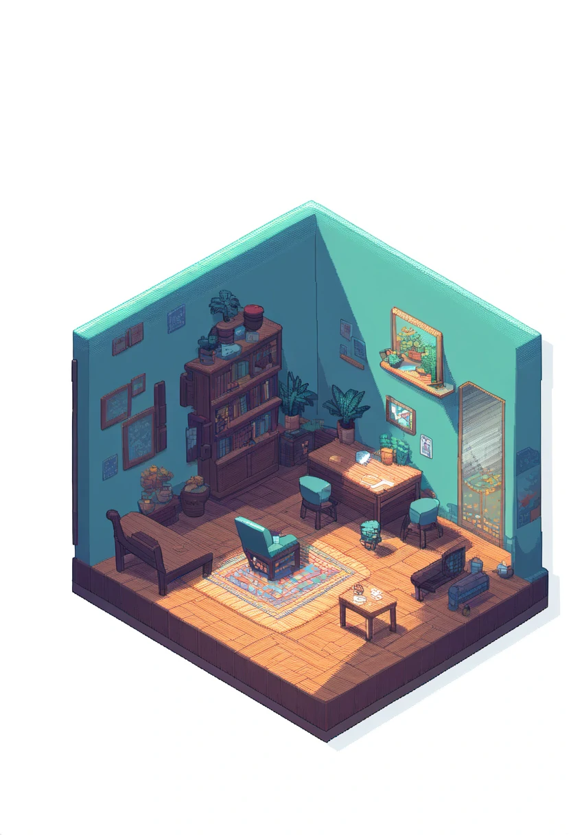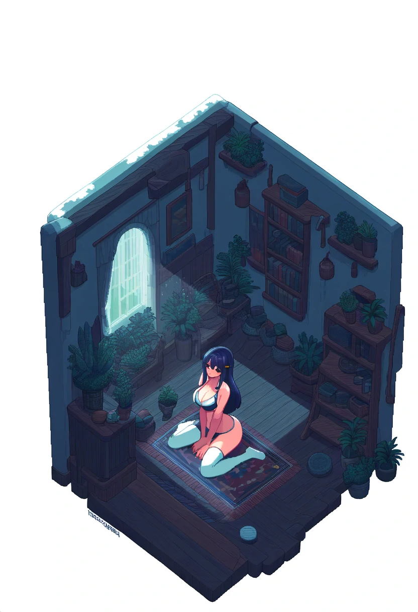| 428 | {{{pixel art}}}, carpet, chair,indoors, {{{{isometric}}}}, light rays,plant,white background, |