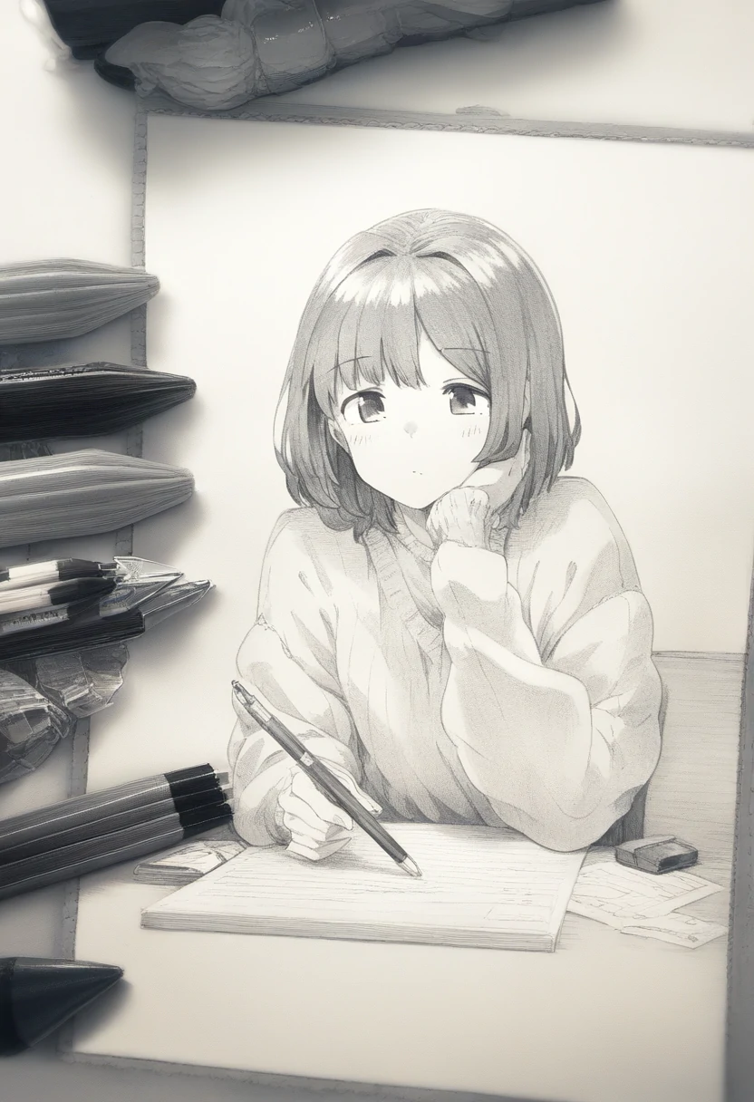| 430 | graphite (medium), {{monochrome}, }, paper, art tools in frame, pencil, traditional media, |