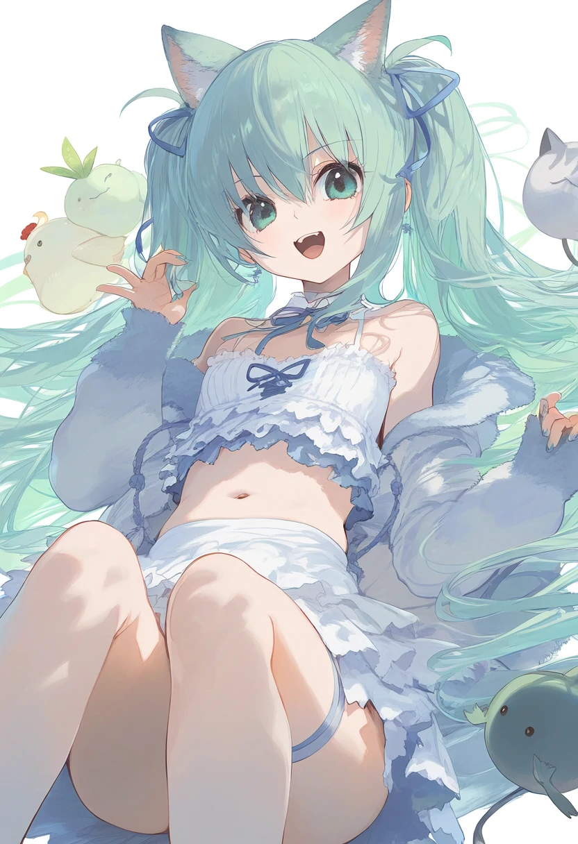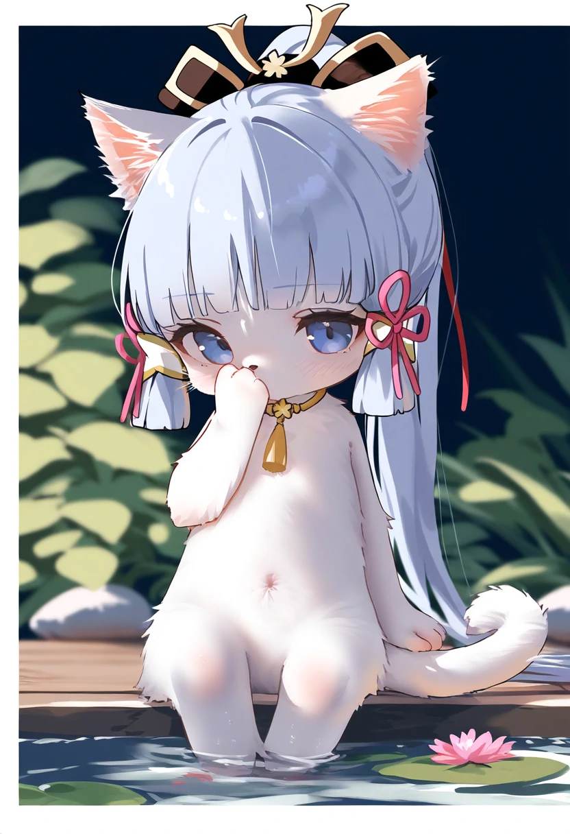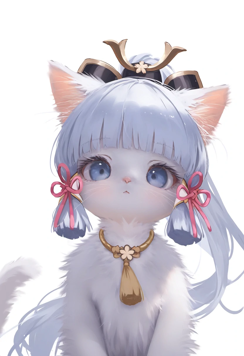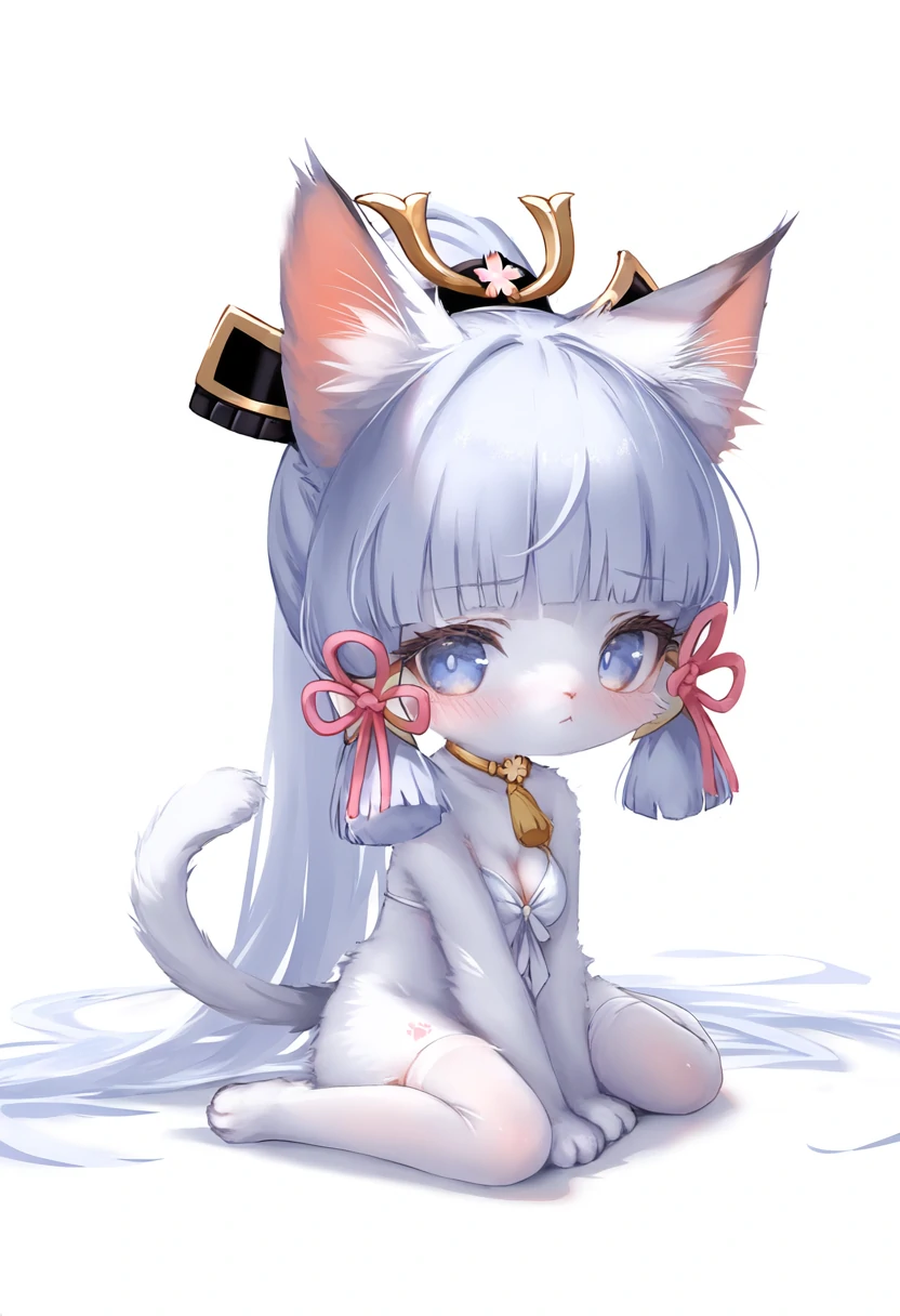 | 433 | [[kamisato ayaka (genshin) cosplay]],no humans,[artist:kedama milk],{wlop, reoen},[[artist:As109]], {{white cat}}, hair ornament, furry, shy, nude, [[chibi]] |